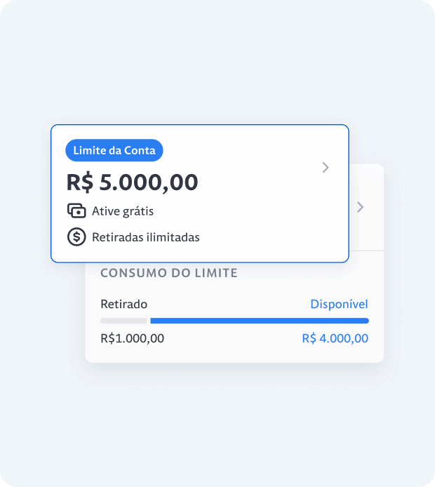 Conte com Cartão de crédito, Capital de giro e limite da conta